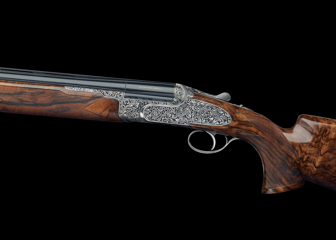 Per ogni calibro è stata creata una bascula dedicata, con geometrie specifi che per ottenere un’armonia costruttiva oggi difficile da trovare sul mercato. Disponibile bigrillo, monogrillo inerziale o meccanico, monobigrillo. Canne monobloc o demibloc (a richiesta), bindelle piane con rabescatura eseguita a mano. Calci selezionati in noce pregiato su specifi che del cliente. Disponibile anche con batteria estraibile Droplock. Ogni elemento del fucile è personalizzabile dal cliente, come un capo sartoriale fatto su misura.